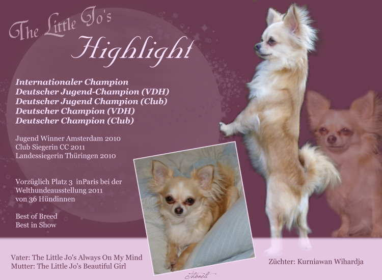 The Little Jo's Marilyn Monroe hat in Dortmund ihre Antwartschaften für den Jugendchampion VDH errungen und wurde auch Europajugendsiegerin 2012.
